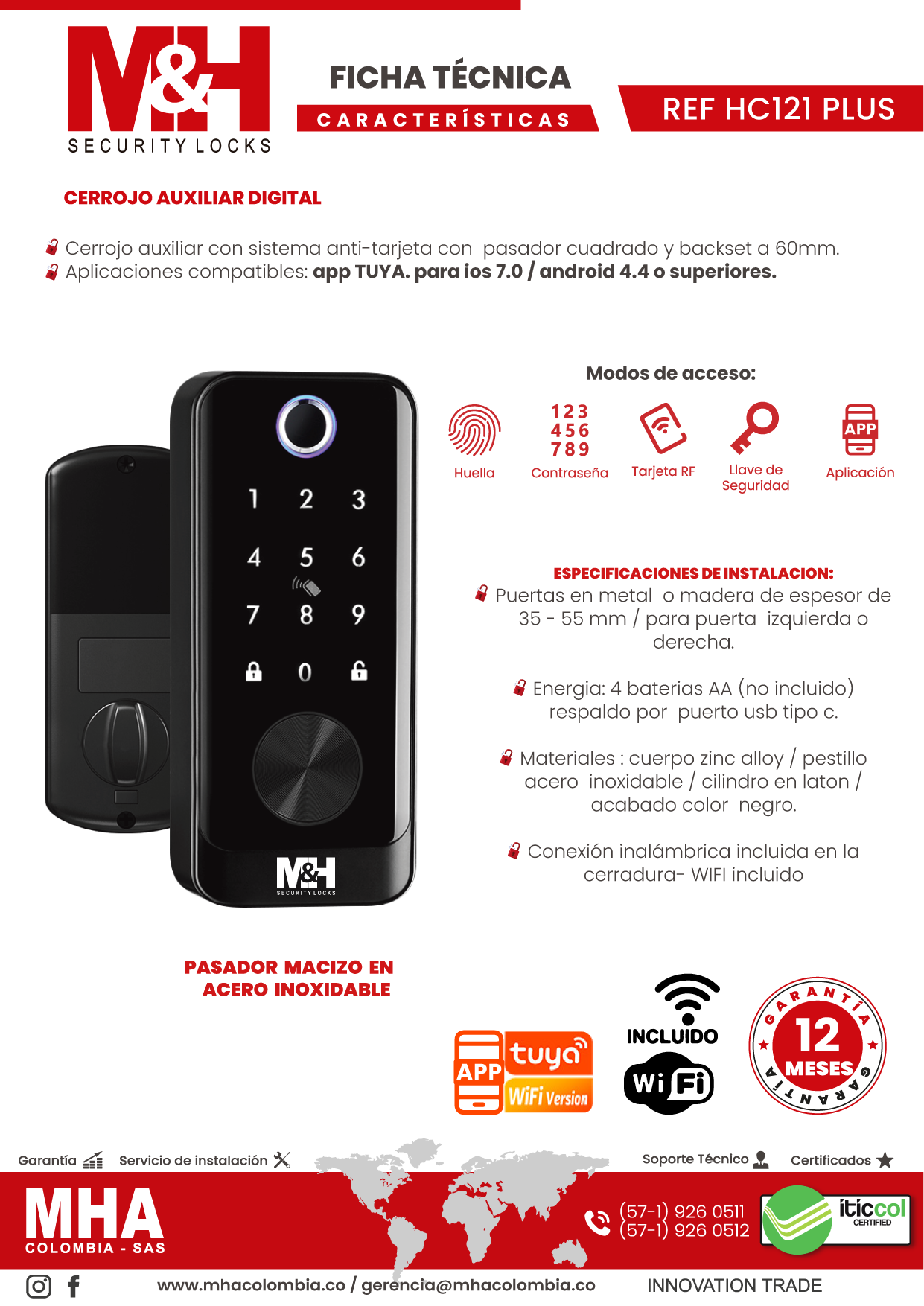 CERROJO DIGITAL DE 1 PASADOR Ref. HC 121